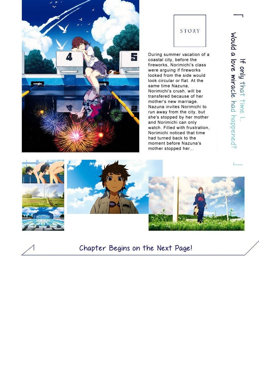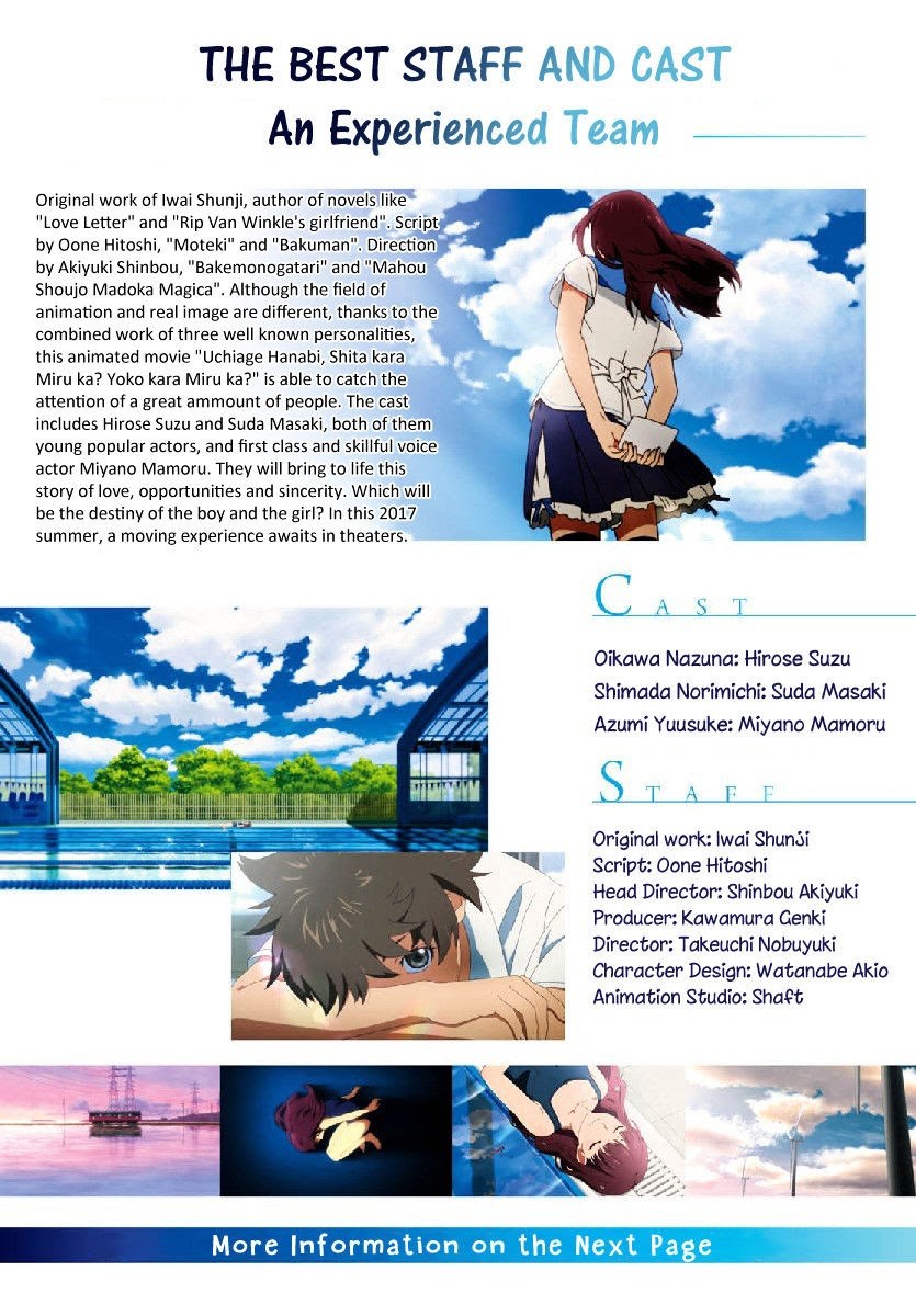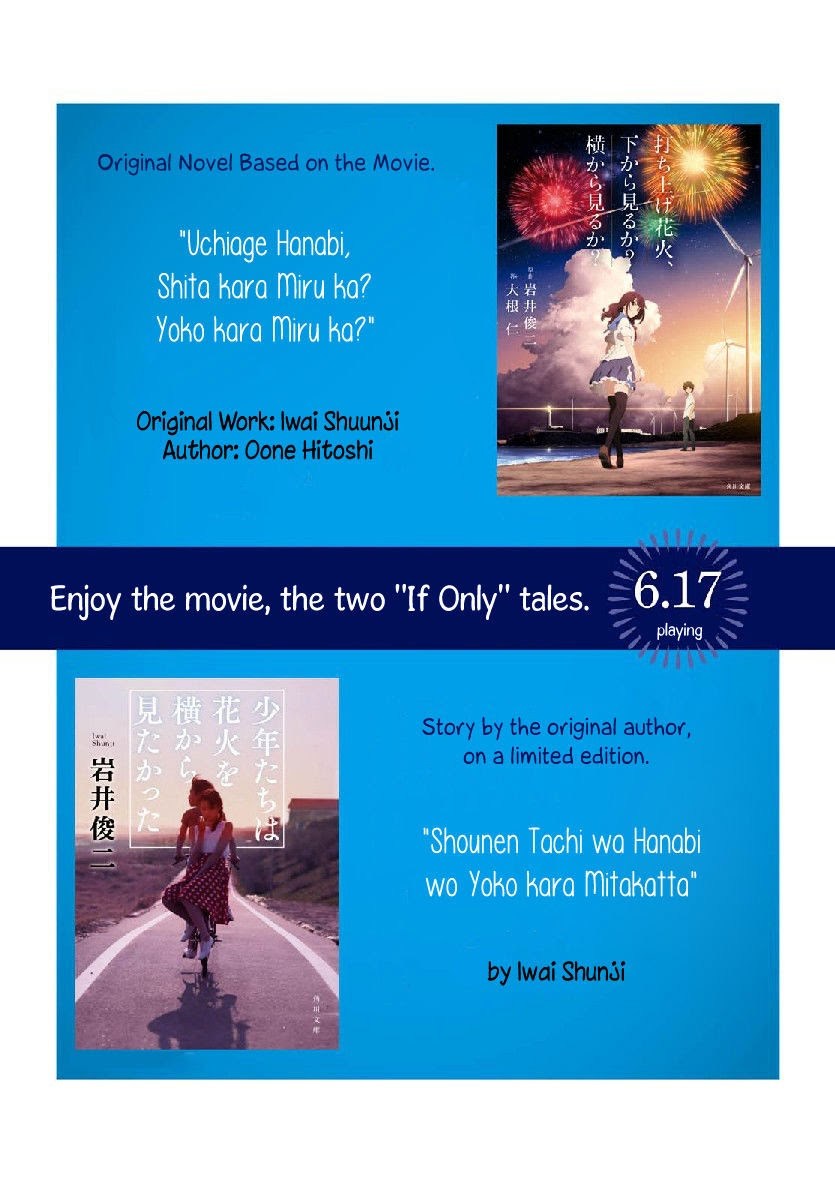 Semua chapter ada di Uchiage Hanabi, Shita kara Miru ka? Yoko kara Miru ka?